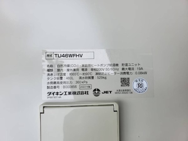 東御市 ダイキン自然冷媒CO2・家庭用ヒートポンプ給湯機ヒートポンプユニットRQW60WHV・貯湯ユニットTU46WFHV 給湯器交換工事
